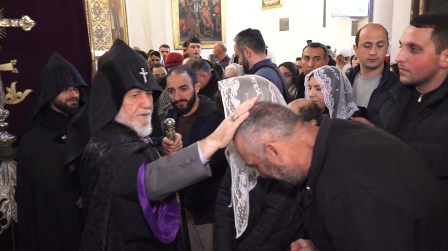 Մայր Աթոռ Սուրբ Էջմիածմնում հանդիսապետությամբ Գարեգին երկրորդ Ամենայն Հայոց Հայրապետի հարյուրավոր հավատացյալներ միաբանների